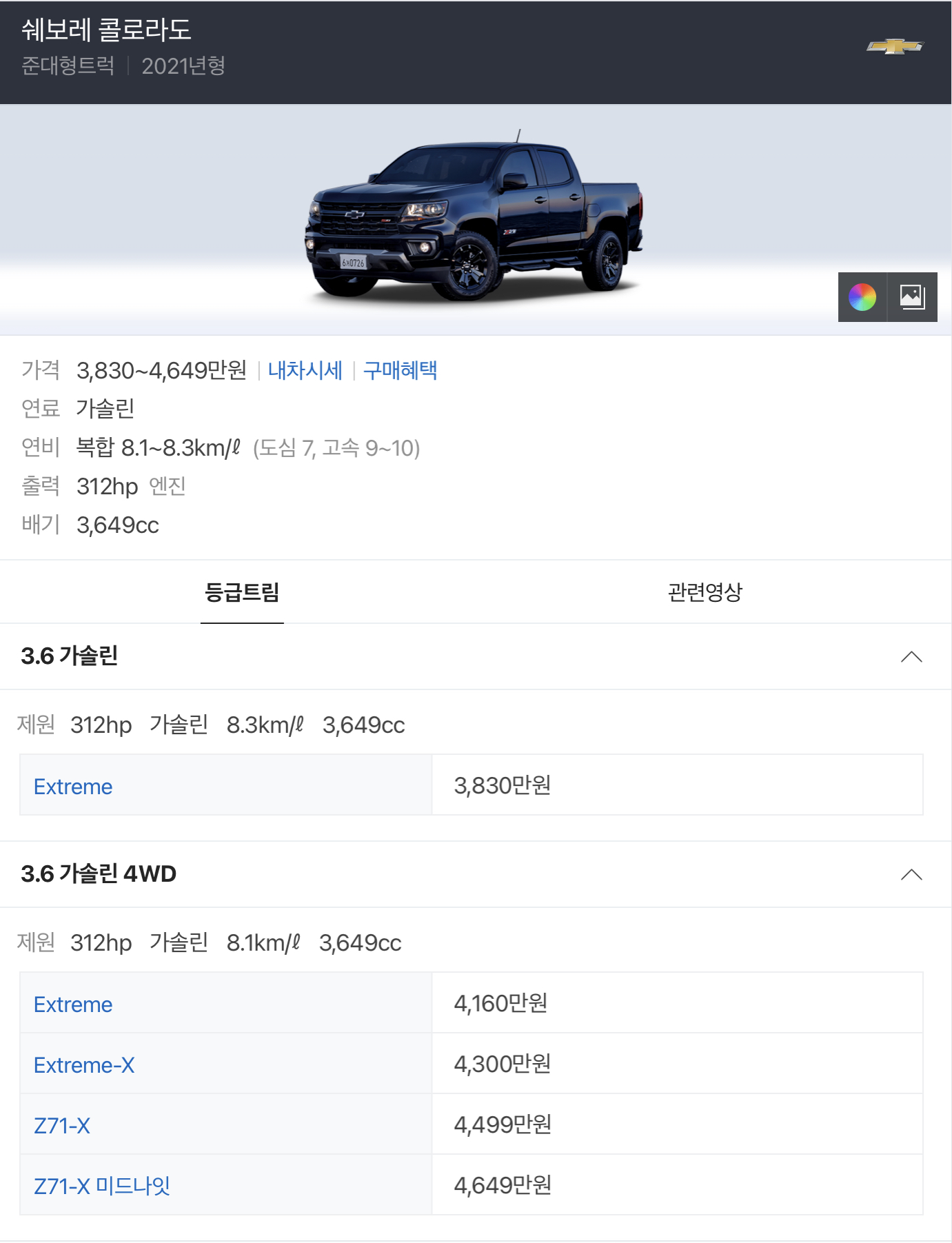 쉐보레 콜로라도(Colorado)로 차박하고 싶다.